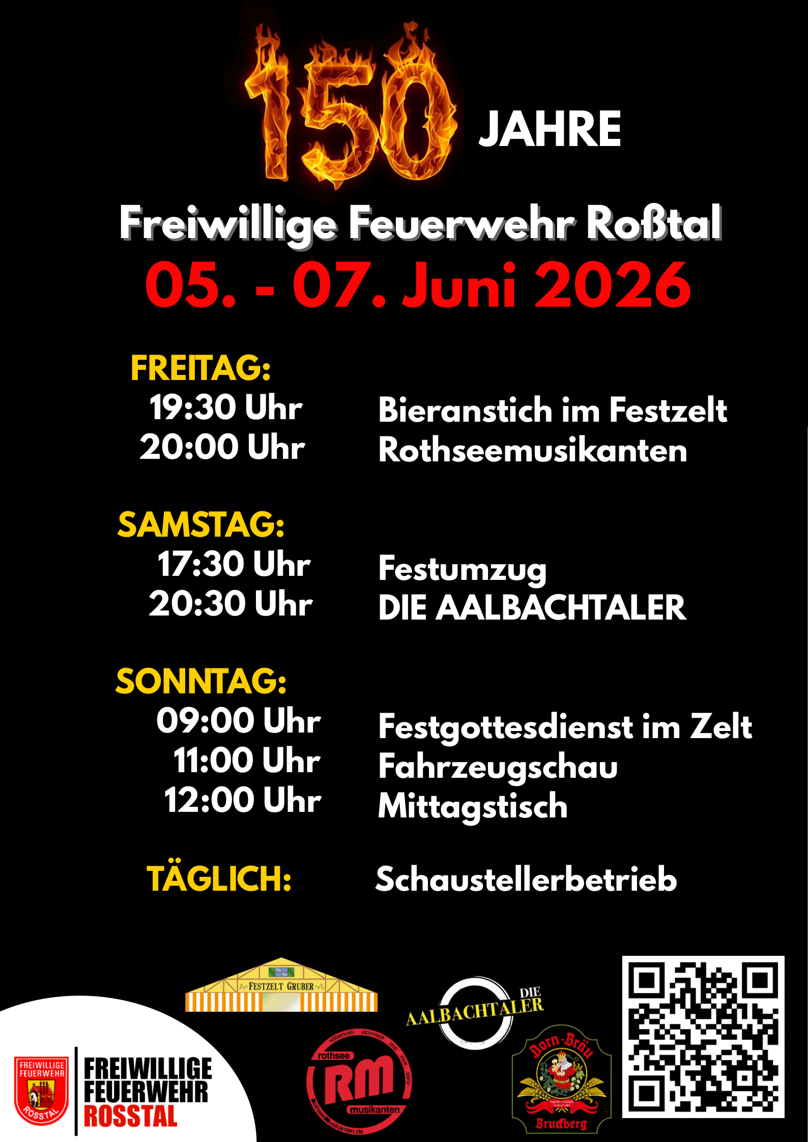 Festprogramm zum 150 Jährigen Jubiläum der Feuerwehr Roßtal