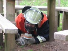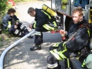 Auch in diesem Jahr gab es neben einigen Stunden Theorie wieder eine umfangreiche praktische Ausbildung. Es gab mehrere Durchgänge durch die Übungsstrecke und Belastungsübungen im Trainingsraum mit dem Pressluftautmer. Der Höhepunkt war sicherlich die Einsatzübung am vorletzten Ausbildungstag, die zwar weniger Schweiß, dafür aber umso mehr taktisches Wissen und schnelles Handeln erforderte.