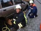 Ein realistisch nachgestellter Verkehrsunfall mit einem PKW, einem Bagger sowie einem Fahrrad wurde ebenso in hervorragender Manier bewältigt. Selbstverständlich stand auch ein Fehlalarm auf dem Plan, wie es eben bei einer Berufsfeuerwehr immer wieder vorkommt. Abschließend musste ein Kellerbrand in Roßtal in der Flurstraße gelöscht werden, zwei verletzte Personen (Dummys) wurden gerettet.
