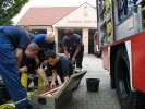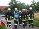 Der BF-Tag wurde dann zum Leidwesen der Jugendlichen durch die Überschwemmung in Buchschwabach, ein größerer realer Einsatz, unterbrochen. Auch der Dienstsport und einige andere geplante Übungen mussten deshalb entfallen. Am Nachmittag konnte der BF-Tag dann fortgesetzt werden. So stand als nächstes ein Scheunenbrand in Buttendorf auf dem Programm. Highlight für die Feuerwehranwärter war sicherlich der Brand zweier Wohnhäuser auf dem Gelände Freizeit und Erholung, ein echtes Feuer musste im Außenangriff bekämpft werden. Selbst Nachlöscharbeiten unter Zuhilfenahme einer Wärmebildkamera wurden durchgeführt.