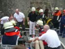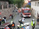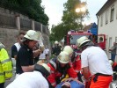 Für Mittwoch, den 21. Juli 2010 hatte die Freiwillige Feuerwehr Roßtal deshalb eine größere Übung angesetzt - Löschmeister Stefan Oppelt bereitete unter Einbindung des BRK Roßtal und BRK Zirndorf ein umfangreiches Szenario vor: Während im unteren Bereich der Richtersgasse eine Kellerbrand mit vermisster Person angenommen wurde, forderte etwas weiter oben ein Verkehrsunfall mit zwei beteiligten PKW und jeweils einer eingeklemmten Person Rettungsdienst und Feuerwehr. Die Unfallopfer wurden realistisch geschminkt und mit Wunden versehen, Rauchbomben platziert und die Nebelmaschine in Stellung gebracht. Die Straße wurde für den Verkehr komplett gesperrt, die Anwohner waren darüber informiert.