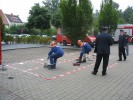 Neben einem theoretischen Test galt es für den Feuerwehrnachwuchs, verschiedene Knoten und Stiche in einer vorgegebenen Zeit vorzuführen: Mastwurf, Brustbund mit Spierenstich und Halbschlag waren gefragt. Das Auswerfen eines Leinenbeutels wie auch das Ausrollen eines Schlauches innerhalb vorgegebenen Linien musste akkurat vorgetragen werden. Eine weitere Station war am Sportplatz zu absolvieren. Auch die richtige Handhabung von Gerätschaften wurde geprüft, die Kübelspritze musste betrieben werden.