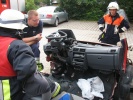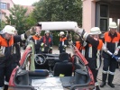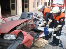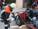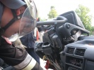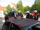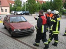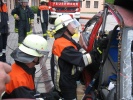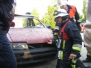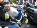 Richtig spannend wurde es dann in der Praxis, wo die Teilnehmer gemeinsam mit Axel Topp an einem richtigen Pkw übten. Es wurde die komplette Rettung einer verletzten Person aus einem verunfallten Pkw durchgespielt - vom Umgang mit dem Patienten, Unterbauen des Fahrzeugs, "Glas-Management" bis zum Einsatz von Spreizer und Rettungsschere sowie zur Fußraumerweiterung durch Rettungszylinder. Es wurde viel ausprobiert und die ein oder andere "unkonventionelle" Methode angewandt. Auch hier richtete sich alles nach der SEBTEFÜ-Methode. Die Vorgehensweise war dank der lockeren Unterrichtsmethode sehr einprägsam, zudem gab Ausbilder Axel Topp immer wieder kleinere wertvolle Hinweise.