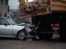 Ein Streulaster ist bei Straßenglätte den Zinkenbuck heruntergerutscht und hat ein abgestelltes Fahrzeug gerammt.
