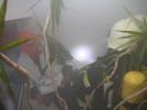 Mittels Disco-Nebel wurde im Bad des zweiten Obergeschosses der Brand simuliert. Mehrere Kamerad/inn/en der Jugendfeuerwehr wurden im verqualmten Bereich als Statisten eingesetzt - die Bewohner sollten natürlich nicht dem dichten Rauch der Nebelmaschine ausgesetzt werden. Die ersten Angriffstrupps unter umluftunabhängigem Atemschutz drangen in das zweite Obergeschoss vor und retteten die dort eingeteilten Statisten - sowohl über das Treppenhaus mit Fluchthauben als auch über die Drehleiter. Trotz des parallel laufenden Löschangriffes wurde nun angenommen, dass sich das Feuer weiter ausbreitet.