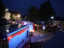 Damit bei dieser Menge an anrollenden Fahrzeugen kein Chaos entsteht, rückten alle eingesetzten Kräfte in den sogenannten "Bereitstellungsraum" (hier die Obere Bahnhofsstraße) an, um von dort bei Bedarf an die einsatztaktisch beste Position dirigiert zu werden. Die Einsatzleitung der Feuerwehr wurde nach einiger Vorlaufzeit ein Zelt der Unterstützungsgruppe Örtlicher Einsatzleiter gelegt und somit wurde Einsatzleiter Stefan Perzinger von einem Stab in seiner Führungsarbeit unterstützt.