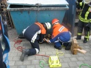 Wie bei der Berufsfeuerwehr ging es bei der Jugendfeuerwehr Roßtal zu: Ein Einsatz folgte direkt auf den anderen. So hatten die Jugendlichen der Feuerwehren des Marktes Roßtal viel zu tun: Nach der Einteilung auf die Fahrzeuge ertönte schon der erste Alarmgong: Ein Schuttcontainer ist - so das Übungsszenario - auf eine Person gestürzt und hat diese eingeklemmt. Mittels Hebekissen konnte der Dummy gerettet werden.