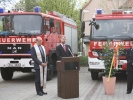 Der stellvertretende Kommandant nahm aus der Hand von Bürgermeister Johann V. symbolisch den Fahrzeugschlüssel entgegen. Die Feuerwehr Roßtal dankte dem Bürgermeister sowie der Kämmerei für die gute und enge Zusammenarbeit bei der Beschaffung. Schließlich konnte das Fahrzeug noch 15% unter dem - durchaus sportlich kalkulierten - Budget beschafft werden.