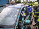 An einen weiteren Fahrzeug wurden die Standardmaßnahmen wie Stabilisieren/Unterbau Brandschutz, Glasmanagement, Tür und- Dachentfernung und das arbeiten mit Rettungszylinder "Stempeln" vorgenommen.