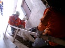 Hier wurde das Bergen einer verletzten Person aus einem Silo geübt. Mit dem Rollgliss musste die 80 kg schwere Dummy-Puppe durch ein Loch an der Decke des Silos hochgezogen werden.