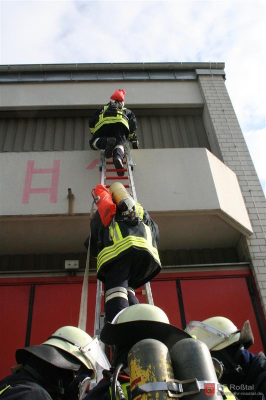 Noch fit? Ca. einen Kilometer Joggen zurück zur Atemschutzzentrale steht ihnen noch bevor.