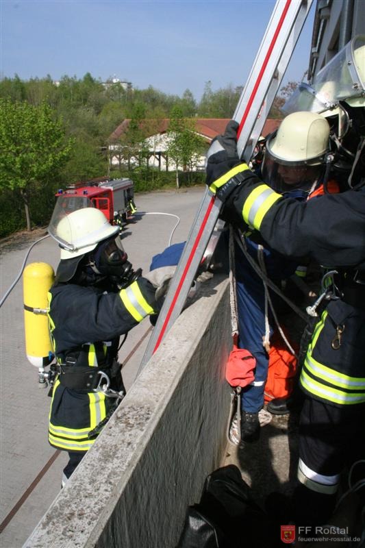 Das Abseilen des Opfers über die Leiter gestaltete sich schwierig, da der Arbeiter immer wieder zusammenbrach.