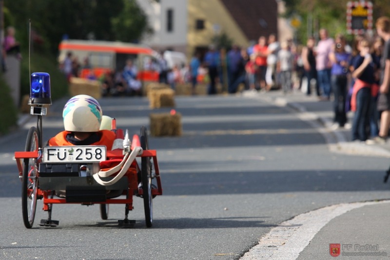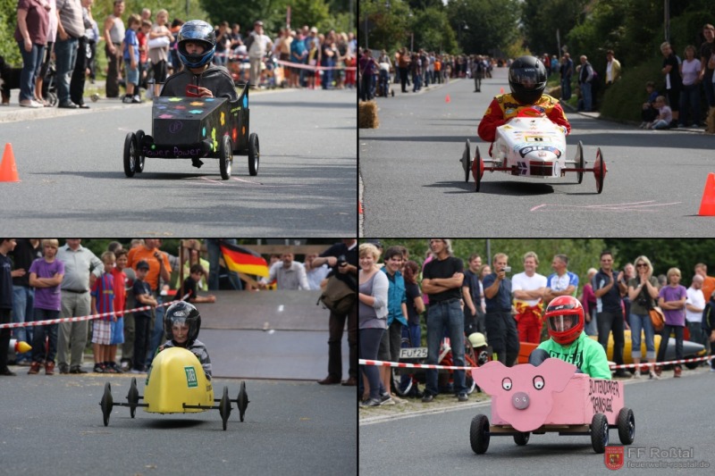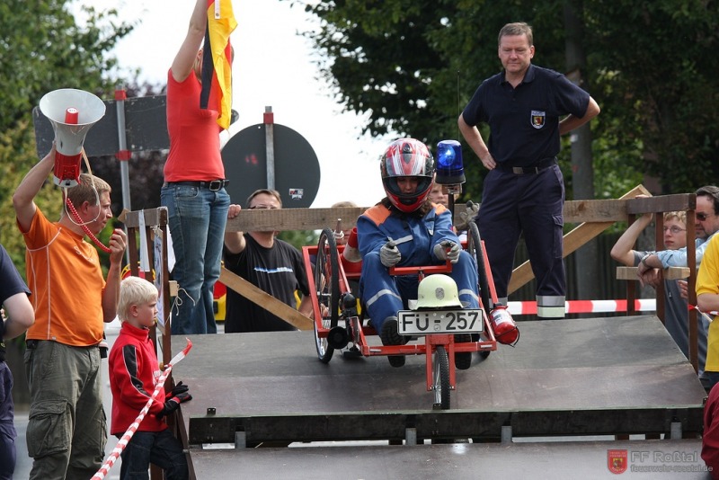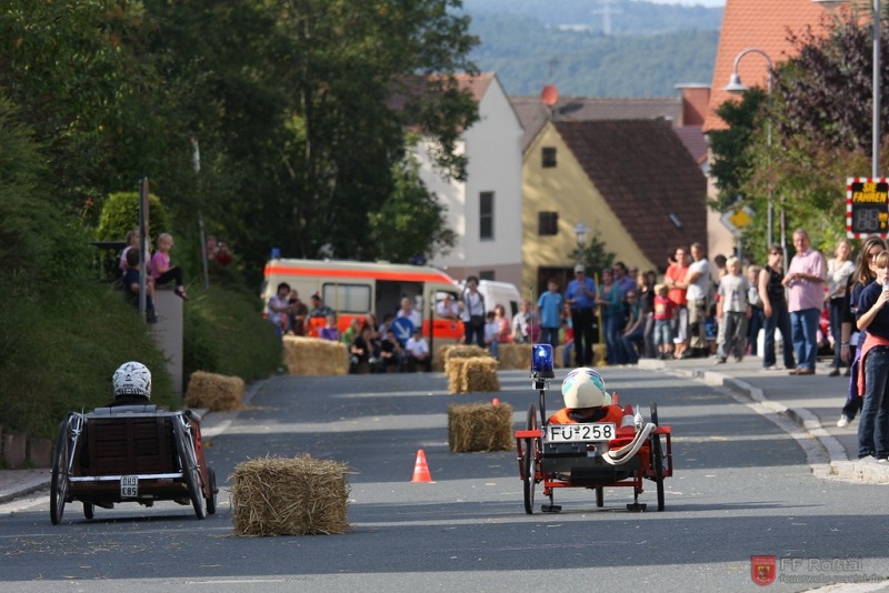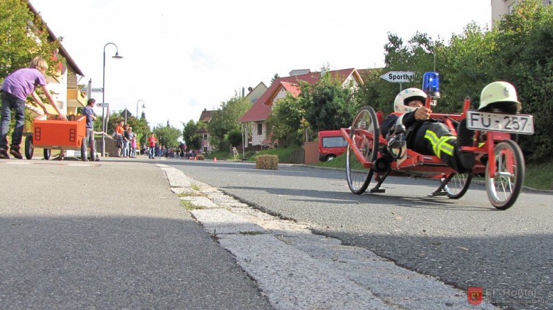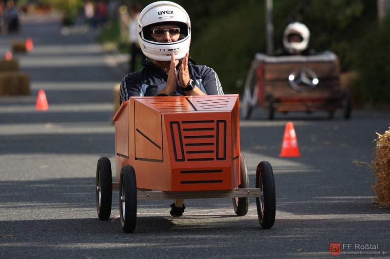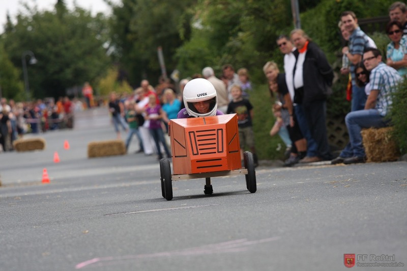 Die Fahrerin blieb bei diesem Sturz unverletzt und konnte weiterfahren. Die gleiche Seifenkiste kippte (als einzige) weitere zwei mal um. In einem Fall kam es zu leichteren Verletzungen Fotos: Ines Volgnandt
