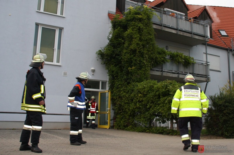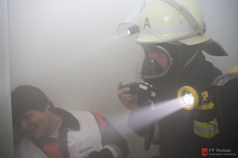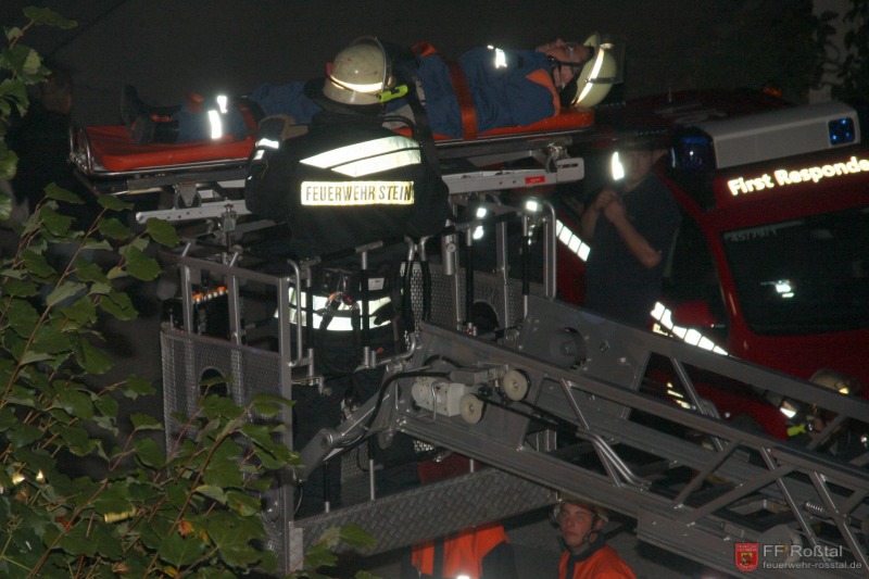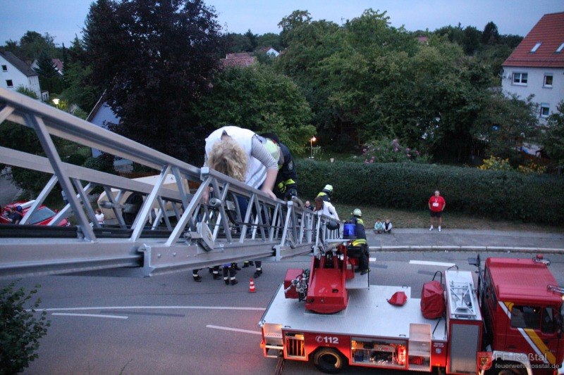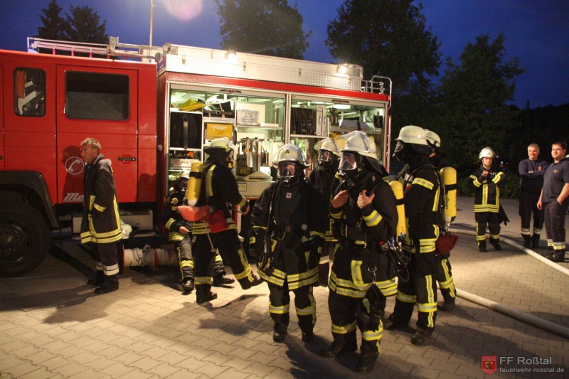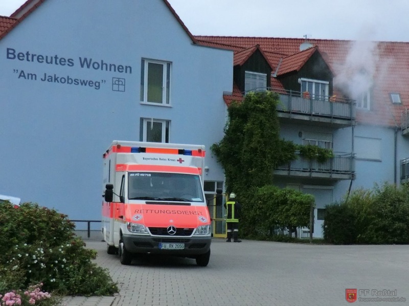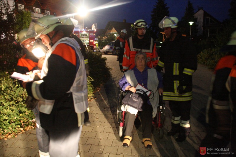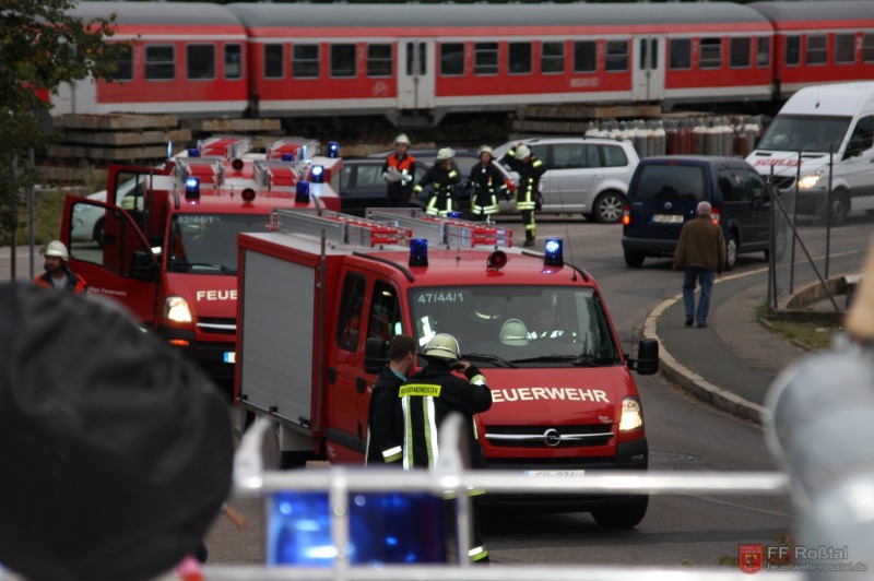 Die Unterstützungsgruppe der Sanitäts-Einsatzleitung hat auf eigene Entscheidung in einiger Entfernung zur Feuerwehr-Einsatzleitung Aufstellung bezogen