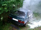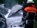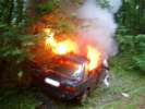 | Die Feuerwehr Roßtal wurde während einer Einsatzübung mit der Jugend ("Berufsfeuerwehrtag") zu einem schweren Verkehrsunfall gerufen. An der Unfallstelle wurde ein stark brennender PKW vorgefunden, die Polizei konnte zu Beginn keine Aussage darüber treffen ob sich noch Insassen im Auto befinden. Daraufhin musste das Fahrzeug abgesucht werden, was sich durch die starken Flammen als sehr gefährlich erwies. Es stellte sich jedoch bald heraus, dass sich alle Insassen bereits in ärztlicher Behandlung befinden. Mit einem Schaumstrahlrohr und Pulverlöschern war der Brand schnell unter Kontrolle. Der Unfall wurde wahrscheinlich durch einen Überholvorgang ausgelöst. Diese Stelle ist ein Unfallschwerpunkt, bereits vor zweieinhalb Wochen ereignete sich ein schwerer Verkehrsunfall ca. 200 m weiter Richtung Clarsbach. Vor einem Jahr verunglückte dort eine Person tödlich. |