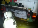 | Kurz nach 23 Uhr: Die beiden Feuerwehranwärter der Roßtaler Jugendwehr Hans-Martin B. und Michael D. befinden sich gerade auf dem Heimweg vom Bahnhof als sie einen Kleinbus sehen, aus dessen Heck Flammen schlagen. Auch der Fahrer sieht in seinem Rückspiegel das Feuer und hält an. Die beiden Jungs machen sofort das Richtige. Michael D. rennt zum nahegelegenen Friedhof um dort eine Gieskanne mit Wasser zu holen, während Hans-Martin B. einen Notruf absetzt. Noch vor dem Eintreffen der Feuerwehr erscheint ein weiterer Feuerwehrangehöriger mit seinem Feuerlöscher. Diesen muss er aber nicht mehr einsetzen, da der Brand bereits von den Jungen gelöscht wurde. Auch eine Gasflsche wird von den anwesenden Helfern aus dem PKW geholt. Als die Feuerwehr eintrifft muss der Motorraum nur noch mit Wasser und Schaum gekühlt werden, um ein wiederholtes entzünden des Feuers auszuschließen. |