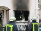 Die Brandbekämpfung wurde mit dem Schnellangriff von außen wie auch mit zwei D-Hohlstrahlrohren im Innenangriff durchgeführt. Hier erwies sich die Wärmebildkamera als sehr hilfreich, da das Feuer bereits die Zimmerdecke stark in Mitleidenschaft gezogen hatte und mit Hilfe der speziellen Technik die Glutnester aufgefunden werden konnten. Nach der Meldung "Feuer aus" wurde das Gebäude mittels Überdrucklüfter entraucht. Das zerbrochene Fenster wurde mit Brettern verschalt. Der Energieversorger überprüfte, ob die Elektro- oder Gasinstallation in Mitleidenschaft gezogen wurde. Die Kriminalpolizei nahm die Ermittlungen zur Brandursache auf.