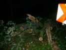 Ein ca. 5 Meter langer Ast mit etwa 20 cm Durchmesser brach von einer Eiche an der Oberen Bahnhofstraße ab. Er fiel von einer Höhe von ca. 12 Meter auf einen darunter vorbeifahrenden Kleinbus. Der PKW wurde erheblich beschädigt, die Fahrerin kam mit dem Schrecken davon. Der Ast wurde mit der Kettensäge zerlegt und beiseite geschafft.