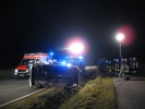 Pkw lag auf der Seite. Fahrer durch First Responder befreit. Ausleuchten und Straßenreinigung.