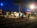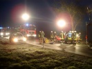 Zur Sicherung der Einsatzstelle mussten an mehreren umliegenden Straßen der Verkehr umgeleitet werden. Der Unfallort wurde mittels Flutlichtstrahlern ausgeleuchtet. Nachdem die Fahrerin durch den Rettungsdienst versorgt wurde, konnte das Dach des völligen deformierten Pkw mittels Spreizer und Schneidgerät abgetrennt werden. Die Frau wurde anschließend mit dem Rettungswagen ins Krankenhaus eingeliefert.