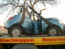 Der Unfall ereignete sich gegen 6:45 Uhr auf der Verbindungsstraße Roßtal-B14 (Staatsstraße 2409) in Höhe der Ortschaft Oedenreuth. Auf reifglatter Straße verlor die Fahrerin eines Ford Ka während eines Überholvorgangs die Kontrolle über ihr Auto und prallte gegen einen Baum. Dabei wurde die komplette Beifahrerseite eingedrückt. Um 6:49 Uhr wurde die FF Roßtal über Sirene und Funkmeldeempfänger zur Rettung der eingeklemmten Person alarmiert.