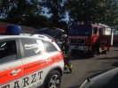 Zu einem Sportunfall auf dem Gelände des TUSPO Roßtal wurde der Rettungsdienst mit Notarzt sowie der First Responder Roßtal am Sonntagnachmittag alarmiert. Die First Responder waren bereits vor Ort als das Notarzteinsatzfahrzeug (NEF) eintraf. Als das NEF zum Stehen kam, fing es stark an zu rauchen so dass es schließlich komplett in Rauch gehüllt wurde. Der Fahrer des NEFs forderte sogleich per Funk die Feuerwehr an und löschte zusammen mit den beiden First Responder den vermeintlichen Brand mit einem Feuerlöscher.