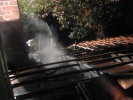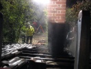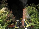 Brand in Hausvordach um Grillkamin - Dach unter Atemschutz abgedeckt und abgelöscht