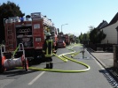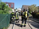 Die Feuerwehren aus Weitersdorf und Roßtal wurden zu einem Kleinbrand in die Weitersdorfer Hauptstraße alarmiert. Bereits auf der Anfahrt war die Rauchentwicklung zu sehen. Beim Eintreffen an der Einsatzstelle stand ein Geräteschuppen in Flammen. Durch die Hitzeentwicklung war ein Fenster des angrenzenden Wohnhauses zersprungen, so dass Rauch in das Gebäude gelangte.