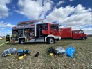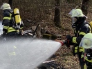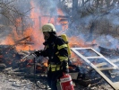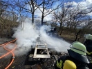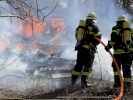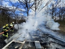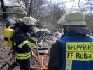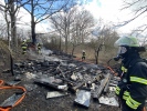 Beim Eintreffen der Einsatzkräfte der Feuerwehr Roßtal stand die Gartenlaube in Vollbrand und der größte Teil war bereits eingestürzt. Mittels dreier Hohlstrahlrohre wurde das Feuer recht schnell gelöscht. Das Übergreifen des Feuers auf die Vegetation, insbesondere viele angrenzende Büsche, konnte noch rechtzeitig verhindert werden. Aufgrund des unwegsamen Geländes und der Entfernung zum Brandort wurden längere Schlauchstrecken verlegt und die Feuerwehr Oedenreuth zur Unterstützung nachalarmiert. Einige Bäume wurden in Mitleidenschaft gezogen und mussten gefällt werden. Hier unterstützte uns die Feuerwehr Stein mit der Drehleiter.
